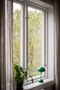 Sovrummet nås i direkt anslutning till vardagsrummet och rymmer enkelt en dubbelsäng. Fönstret släpper in ett härligt ljus och bjuder på fågelsång som sällskap. Även här är väggarna målade i samma nyans som vardagsrummet, vilket genomgår hela lägenheten och taket pryds av ytterligare en vacker rosett.