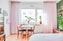 Till vänster om hallen ligger bostadens stora och mysiga allrum med god plats för både soffa och säng om så önskas. Idag inrett med dubbelsäng, sitt- samt matgrupp. Stora fönster tillför rummet rikligt med ljus. Bra förvaring i klädkammaren. Vita väggar med grön fondvägg och laminat på golv.