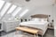Rymligt sovrum med ingång till en stor klädkammare. Det bra planerade sovrummet ger plats åt en säng av större mått, förvaringslösning alternativt en mindre arbetsplats. Charmiga vinklar och flertalet takfönster ger en härlig karaktär. Vitmålade väggar och ljust golv.