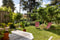 Bostaden trädgård är lummig, insynsskyddad och ligger i ett soligt läge med härlig utsikt över grönska och parken.
