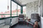Rymlig inglasad balkong med högt skyddat läge och eftermiddags/kvällssol i västerläge, två infravärmare med timer.