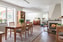 Vardagsrum: Generöst rum i vinkel med fiskbensparkett, vita väggar, öppen spis, utgång till terrass samt ett äldre blyinfattat fönster. Matplats som rymmer stora sällskap.