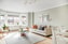 Trevligt kök med snickerier i vitt. Grönt målade väggar och slipat parkettgolv. Maskinellt utrustat med kyl och frys i sidebyside med inbyggd ismaskin (2016), diskmaskin (2017), spis/ugn (2020) samt fläkt. Matplats intill fönstret.