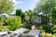 Den generösa trädgården erbjuder allt ifrån äppleträd och körsbärsträd till krusbär, vinbär, björnbär, rabarber, jordgubbar, vindruvor, blåbär och hallon men även många härliga växter som japanskt körsbärsträd, silverpäron, hortensia, hibiskus, rosor, klematis med flera. Under sommarhalvåret är trädgården nästan helt insynsskyddad tack vare all växtlighet. För den som vill får även ett växthus uppföras på tomten och det finns färdiga planteringslådor att börja odla och plantera i.