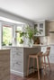 Det går inte att motstå att fortsätta in i det mycket smakfullt renoverade köket. Här erbjuds otroliga ytor och matlagningen blir en social och naturlig del av umgänget tack vare kökets utformning. De sobra färgvalen med stora keramiska bänkytor samt vitvaror i rostfritt stål skapar en bra mix av det moderna och det naturliga och vackra i materialvalen. Köket är ritat av ägarna själva och tillverkat av Onsala Snickeri. Här finns både en köksö att sitta vid samt en som delar av mot hallen. Otroliga mängder förvaring samt väl tilltagna bänkytor ger dig dessutom det praktiska. Här består maskinparken av kyl och frys i fullhöjd, inbyggnadsugn, mikro, integrerad diskmaskin, induktionshäll samt fläktkåpa.