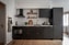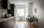 In i köket, som renoverades 2020 med en stilren och smakfull design. De stilrena, svarta skåpsluckorna skapar en elegant kontrast till de vitmålade väggarna och de omsorgsfullt slipade brädgolven (renoverade 2019). En vit bänkskiva, kombinerad med beslag och blandare i mässing, ger en lyxig känsla. Köket behåller sin charm från 1920-talet med pärlspont på väggarna och höga lister. Det inbyggda skafferiet erbjuder gott om förvaring för både köksutrustning och matvaror. Utöver spishäll, ugn och köksfläkt finns här även diskmaskin och en integrerad kyl/frys för extra bekvämlighet. Ett matbord för 2–4 personer får enkelt plats.
