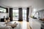 Kök med öppen planlösning mot rummet. Stort ljusinsläpp genom fina fönsterpartier. Köket har bänkskiva i marmor, vita köksluckor, varmluftsugn, diskmaskin, induktionshäll samt fläkt. Rummet har parkettgolv, vitmålade väggar och spotlights i tak. Utgång till uteplatsen med högt läge. Från uteplatsen finns i trappa som förenklar vägen till busshållplatsen.