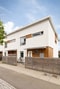 Varje radhus har en egen liten trädgård på baksidan och en stensatt uteplats på framsidan.