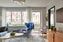 Vardagsrum: I den öppna planlösningen erbjuds ett rymligt och socialt rum där breda fönsterpartier och generös takhöjd ger ett fantastiskt ljusinsläpp. Här finns gott om plats för både soffgrupp och matsalsbord. Genomgående enstavigt plankgolv från Kährs och ljusgrå nyans på väggar. Från rummet nås en av bostadens två balkonger, om ca. 6 kvadratmeter i västerläge.