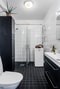 Det helkaklade badrummet från 2010 är utrustat med dusch och tvättmaskin. En bekväm lösning som förenklar vardagen. Till lägenheten hör ett källarförråd.