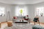 Vardagsrum i ljusa färger och med öppna ytor som ger goda möbleringsalternativ. Rummets stora fönsterpartier ger ett fint ljusinsläpp.