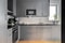 Köket och vardagsrummet smälter samman i en öppen planlösning, vilket skapar en social och inbjudande atmosfär. Köket är utrustat med högkvalitativa vitvaror och har grå skåpluckor som harmonierar fint med de vita väggarna och golvet. Här finns generösa arbetsytor och gott om plats för både matlagning och umgänge.