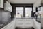 Köket har en trevlig planlösning och ett härligt ljusinsläpp. Köksluckorna är i vitt utförande och bänkskivan i grått. Stänkskyddet är svart kakel som matchar fint till bänkskivan. Den maskinella utrustningen är spis, spisfläkt, integrerad diskmaskin, ugn, mikrovågsugn samt kyl och frys.