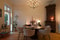 Parketten löper vidare in i matsalen och skapar ett enhetligt intryck. Här kan man samla vänner och familj för härliga middagar. Även detta rum bjuder in till lugna stunder framför en välbevarad kakelugn