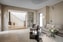 Badrummen är utrustade med dusch, wc och en klassisk grå kommod från Kvänum. Bänkskivan är i natursten och tvättstället i porslin. Inspirationen till badrummen har hämtats från Story Hotel i Stockholm.