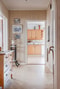Möblerbar inre hall med plastmatta på golv och tapetserade väggar. inbyggd garderob i hallen.