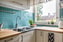Välplanerat och modernt kök med ljusinsläpp från generöst fönster. Här finns gott om förvaring bakom vita skåpsluckor samt bra arbetsyta. Maskinellt utrustat med gasspis, fläkt, kyl/frys, ugn.