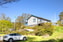 En sommarstuga med närhet till havet beläget uppe på en kulle.