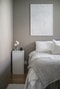 Bostadens större sovrum är rofyllt beläget mot föreningens innergård, här kan ni njuta av en god natts sömn högt ovanför stadens puls. Här finns gott om plats för en stor dubbelsäng med tillhörande sängmöbel, nattduksbord, byrå samt övrig inredning. Väggarna är målade i en harmonisk grå nyans och på golvet löper den vackra parketten. Här finns goda möjligheter till förvaring i garderobsutrymmen.