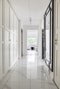 När du kliver in i bostaden möts du av en ljus och välkomnande hall med vit marmorerad klinker under fötterna. Här finns gott om plats för avhängning direkt till vänster, och längs väggen löper en rad garderober som ger utmärkt förvaring. Ljuset från vardagsrummets fönster längre in i lägenheten skymtar redan här och förstärker den luftiga känslan.