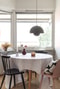 Köket är en fin blandning av nytt och tidlöst – vita köksluckor möter träbänkskivor och ett ljusgrått kakelstänkskydd. Det finns gott om arbetsyta och förvaring, liksom alla bekvämligheter du kan önska: diskmaskin, kyl och frys. Intill fönstret ryms ett matbord för fyra där du njuter av morgonkaffet i sobert ljus. Den platsbyggda träbänken längs väggen ger extra sittplatser med personlig touch.