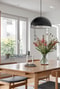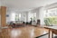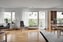 Ekgolv och släta vita väggar. Öppen planlösning mot matplats och kök. Stora fönsterpartier samt direktutgång till den egna uteplatsen.