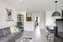 Till höger om hallen ligger köket och vardagsrummet i en öppen planlösning. Tåligt Swiss-floor på golvet. Fönster och två altandörrar ut till balkongen i söderläge skänker mycket ljus till bostaden.