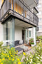 Uteplatsen i sydvästläge erbjuder en perfekt kombination av inglasad yta och öppen trall. Den inglasade delen fungerar som ett extra rum större delen av året och när glaspartierna skjuts åt sidan öppnar bostaden upp mot den anslutande uteplatsen med plats för bord och stolar. Allt vetter mot föreningens inhägnade gård omgiven av grönska, vilket skapar en privat och trivsam miljö – en plats att njuta av både vardag och sociala tillställningar.