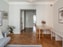 Vardagsrummet är en generös och inbjudande samlingspunkt med tidlös karaktär. Den klassiska fiskbensparketten löper vidare från köket och möter ljusa, gråmålade väggar som tillsammans med en takhöjd om ca 2,85 meter skapar en luftig känsla. Det stora fönstret fyller rummet med naturligt ljus och framhäver de bevarade originaldetaljerna, bland annat fönsterblecket i sten. Här finns gott om plats för både en rymlig soffgrupp och matsalsbord, samtidigt som planlösningen gör rummet lätt att möblera och anpassa efter behov.