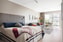 Vardagsrummet med sovalkov är rymligt för sina kvadratmeter och har plats för både större soffgrupp, möblemang och en bekväm säng. De stora fönsterpartierna ger rikligt med ljus och leder ut till en solig balkong i söderläge – en naturlig förlängning av bostaden under sommarhalvåret.