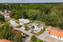 Arkitektritad fastighet med bostadshus, gästhus och solig innergård nära havet