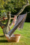Utanför väntar en grönskande trädgård med stora träd som ger svalkande skugga och en syrenhäck som skyddar mot gatan. Här kan du njuta av frukt från två äppelträd och två plommonträd – ett med gula och ett med lila plommon. För gästerna finns en gäststuga med extra sängplatser, och det gamla utedasset har fått nytt liv som förråd. I dungen gömmer sig till och med en liten trädkoja – en plats där både stora och små kan drömma sig bort.