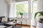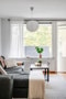 Ljust och luftigt vardagsrum med generösa ytor och stort fönsterparti som släpper in rikligt med dagsljus. Rummet rymmer utan problem både soffgrupp och ytterligare möblemang, exempelvis läshörna eller arbetsplats. Vacker parkett och neutrala ytskikt skapar en trivsam och lättmöblerad miljö med utsikt mot grönska.
