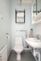 Våtrumsmatta på golv och väggar här finns handfat och wc.