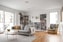 Luftigt och stort vardagsrum med ett flödande ljusinsläpp från höga fönsterpartier från tre håll. Ytorna är härligt öppna mot kök och rymmer såväl soffgrupp och matgrupp. Den väl tilltagna glasdörren öppnar vidare till balkongen som förlänger rummet ytterligare. På golvet ligger parkett och väggarna vitmålade.