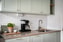 Det nyrenoverade och inbjudande köket från 2024 är en trivsam plats och erbjuder plats för matbord. De ljusgröna köksluckorna harmonierar fint med vitt kakel och en mörkbeige stenskiva som skapar en varm och modern helhet. Köket är utrustat med gasspis, ugn, fläkt, diskmaskin samt kombinerad kyl och frys. Väggarna är målade i vitt och det generösa fönsterpartiet släpper in rikligt med dagsljus som förstärker den luftiga känslan.