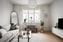 Vardagsrummet vetter mot den lummiga innegården. Tack vare ett stort fönsterparti, vitmålade väggar och den generösa takhöjden så präglas rummet av en luftig känsla. Rummet är lättmöblerat och rymmer plats för större soffgrupp. Bevarad och rymlig platsbyggd förvaring sätter prägel på rummet och tillför både charm och generös funktion.