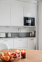 Köket från Vedum kombinerar funktion och design på bästa sätt. Här finns integrerade vitvaror från Electrolux – inbyggd ugn och mikro, induktionshäll, diskmaskin samt kombinerad tvättmaskin och torktumlare – allt smakfullt inramat av ljusa toner och ett stilrent uttryck. Det vackra parkettgolvet löper enhetligt genom hela lägenheten och förstärker den moderna helheten.