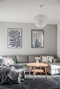Vardagsrummet är luftigt och socialt med god plats för soffgrupp. De stora fönsterpartierna ger ett vackert ljusinsläpp och härifrån nås den andra balkongen i soligt söderläge, en underbar plats för avkoppling från morgon till eftermiddag.