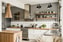 Ljust och trivsamt kök från IKEA med bänkskiva i ek, betonggolv med installerad golvvärme och ljust målade väggar. Köket är utrustat med diskmaskin från IKEA, spishäll och ugn (2007) från SMEG, kyl och frys (2025) från Samsung samt mekanisk/kolfilterfläkt (2024).