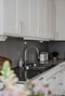 -- Modernt och hemtrevligt kök med ekparkett och vita målade väggar. Vit skåpinredning från Marbodal. Utrustat med induktionshäll, ugn, fläkt, micro, kyl/frys och integrerad diskmaskin.