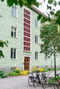 Den grönskande innergården är en uppskattad oas där långa kvällar kan avnjutas i trevligt sällskap, omgiven av lummig grönska.