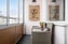 Vidare i sovrummet återfinns även det generösa ljusinsläppet med ett stort fönsterparti som vetter mot öster. Sovrummet är stort och rymmer med enkelhet en stor dubbelsäng samt övrigt möblemang såsom garderob eller skrivbord om så önskas. Sovrummet har även inbyggd förvaring som sömlöst blir ett med väggarna. Väggarna är målade i en harmonisk, grå nyans och en vägg är klädd i en vitmålad träpanel vilket skapar ett hemtrevligt intryck.