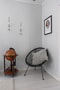 Ljus och rymlig hall med gott om plats för förvaring. Vita väggar och ljust golv.