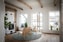 Från hallen äntrar du den rymliga matsalen där den ljusa ekparketten fortsätter vidare. Väggarna är strukna i ljusgrått och ljuset flödar fritt in från flera höga fönster. På ena väggen uppenbarar sig framtaget tegel som minner om svunna tider. Den generösa ytan rymmer många middagsgäster runt bordet och ytterligare en avdelning för en läshörna vid den ståtliga trappan. Rummet har en härlig öppenhet och kontakt med köket som är placerat i motsatt ände. Köksinteriören går i tidstrogen stil med vita luckor, skålhandag, arbetsbänk i marmor och svart stenvägg ovan. Vitvarorna är huvudsakligen integrerade och rostfria.