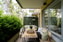 De stora glaspartierna längs ena väggen släpper in rikligt med dagsljus och bidrar till en ljus och trivsam atmosfär i hela bostaden. Härifrån nås även lägenhetens rymliga uteplats som erbjuder gott om plats för såväl matbord som loungemöbler – en perfekt förlängning av bostaden under årets varmare månader och en idealisk plats att njuta av soliga dagar och ljumma sommarkvällar.