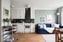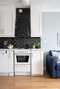 Här har varje kvadratmeter nyttjats på bästa sätt. Hemmets hjärta utgörs av det öppna sällskapsrummet där kök och vardagsrum samspelar på ett naturligt sätt. Här finns gott om plats för både soffgrupp och matplats – perfekt för såväl vardag som sociala tillställningar. Det stilrena köket i svart och vitt är välutrustat med diskmaskin, generösa arbetsytor och goda förvaringsmöjligheter.