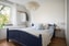 Rofyllt sovrum med fönster mot grönska som bidrar till en lugn och avkopplande miljö. Här finns plats för dubbelsäng med tillhörande sängbord samt goda garderobslösningar.