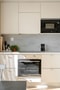 Köket är stilrent och fullt utrustat med generösa förvaringsmöjligheter i både över- och underskåp samt arbetsytor på den gråa bänkskivan. I vardagsrummet, med sina ljust målade väggar och vackra ekparkettgolv, finns gott om plats för både soffgrupp och matplats, perfekt för avkoppling och umgänge.