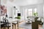 Tack vare ett genomgående ljusflöde känns vardagsrummet stort och luftigt. Lättmöblerade ytor med raka linjer som rymmer gott om plats för större matgrupp, soffmöblemang och TV-hörna. Utgång till balkong som vetter mot lummig innergård. Vitmålade väggar och fiskbensparkett.